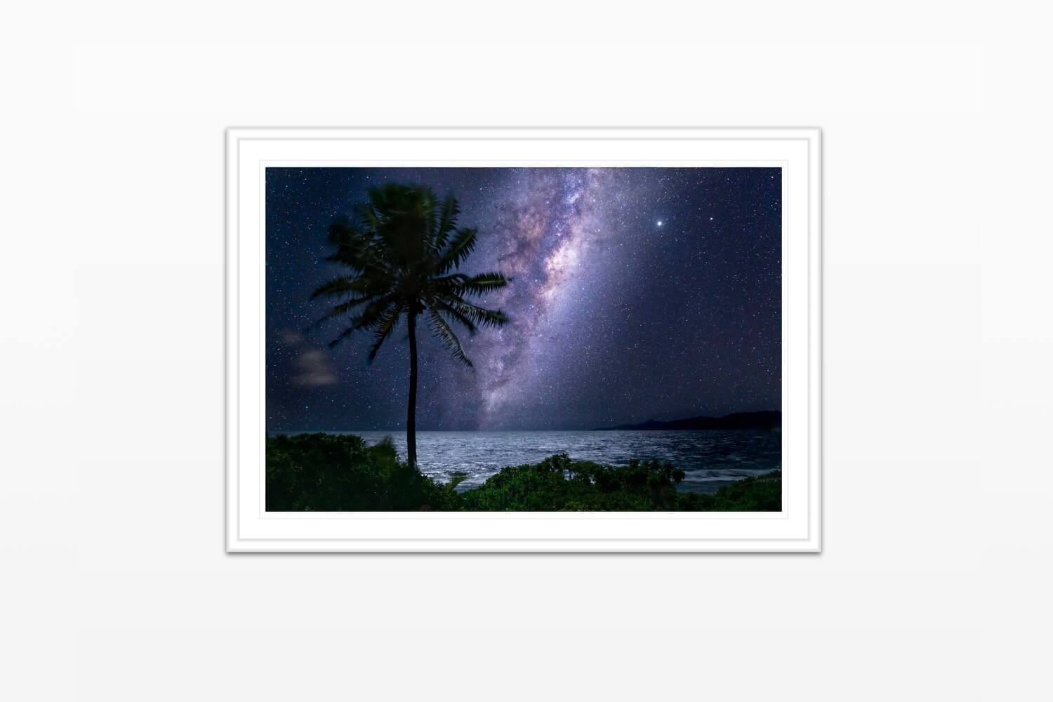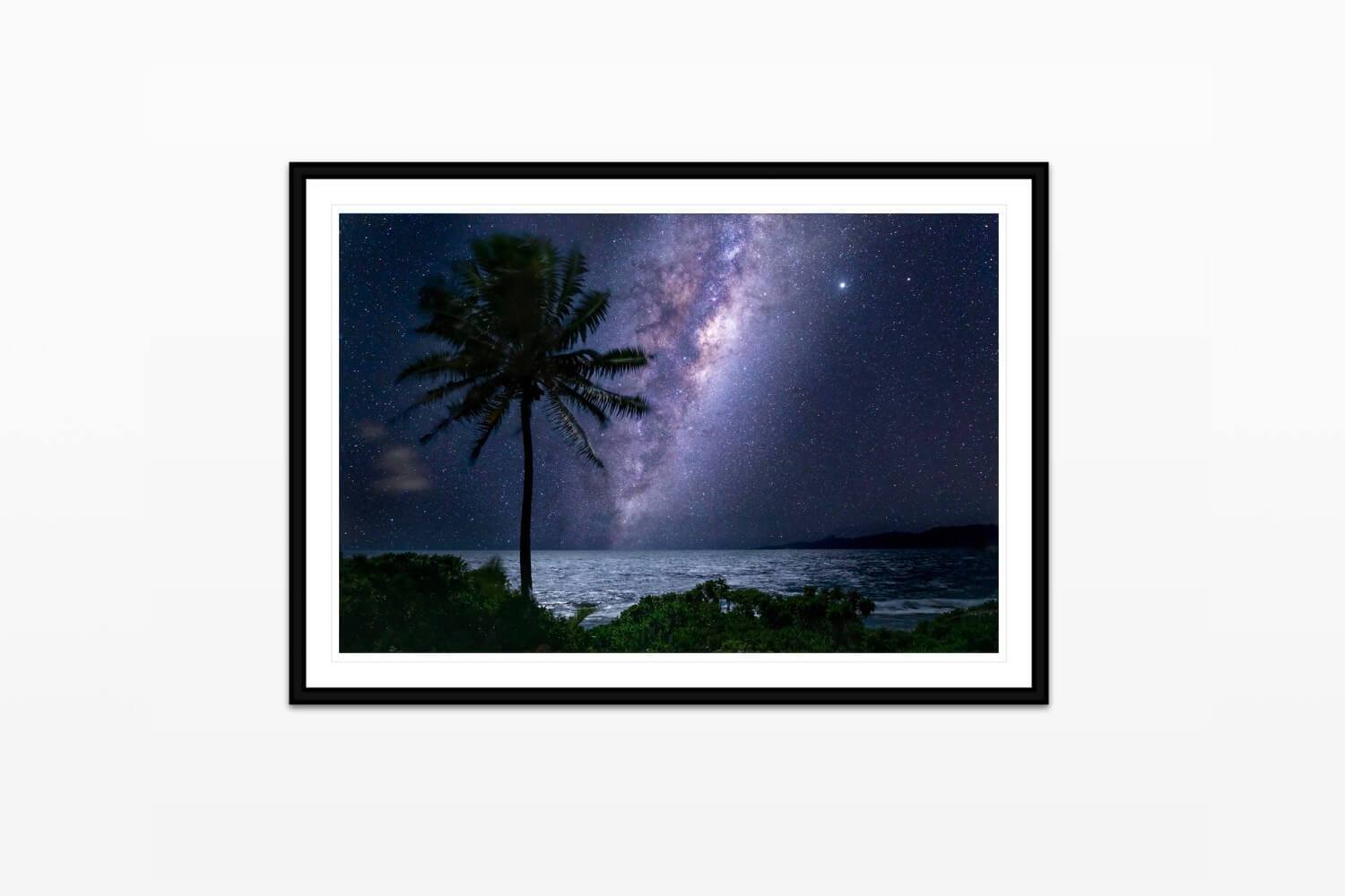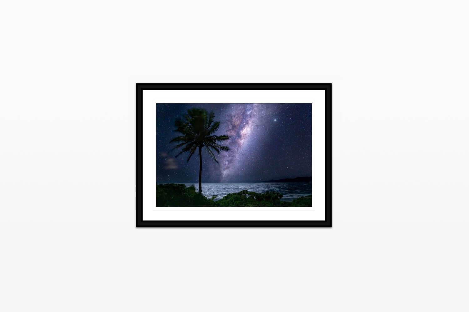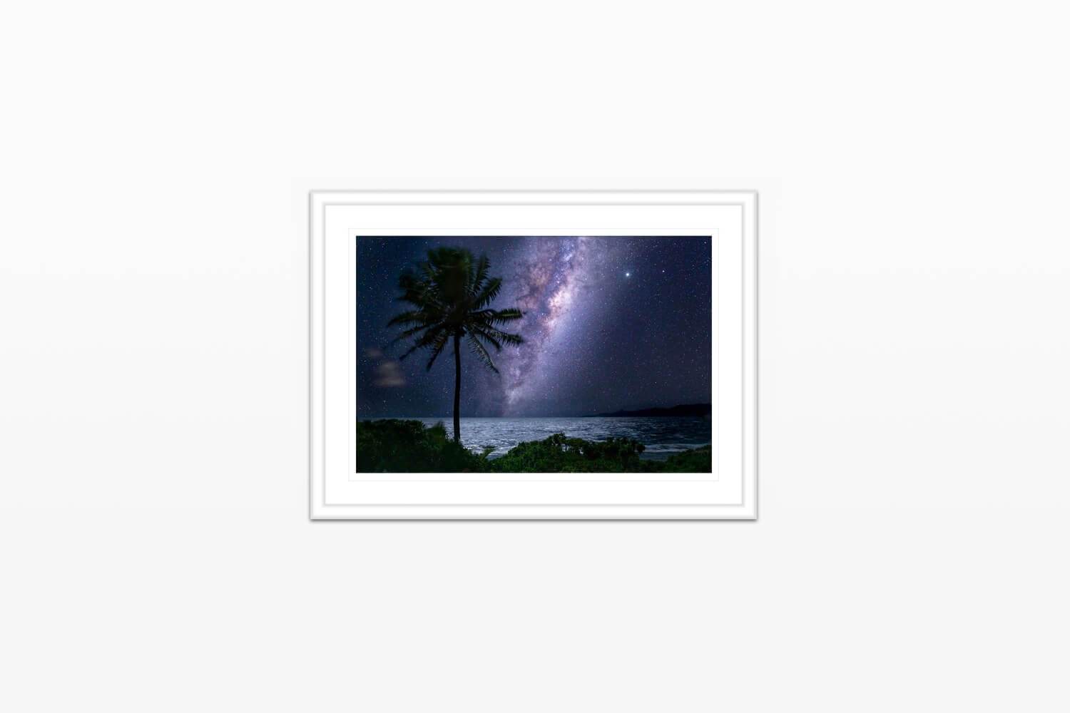Shot on the island of Bora Bora on the reef side of the St. Regis Bora Bora resort looking out over the South Pacific ocean. The nights in the French Polynesia on a cloudless night are full of stars. To the naked eye the milky way appears as a thin strip of clouds but with a 15 second long exposure the sky comes alive. Captured August 2020. Limited Edition
