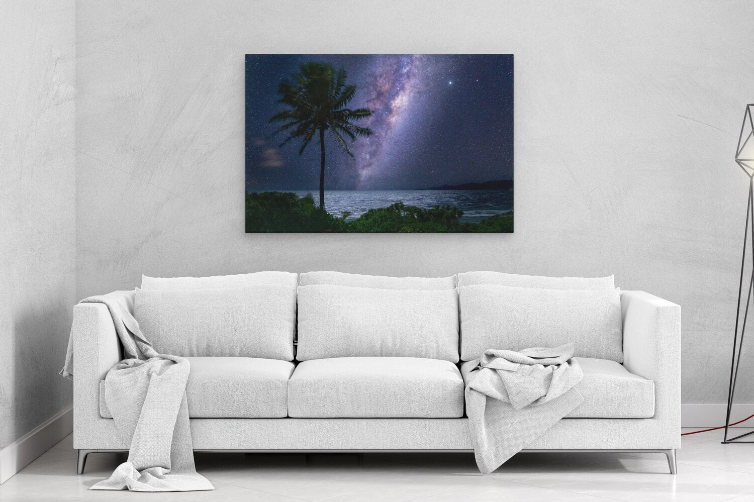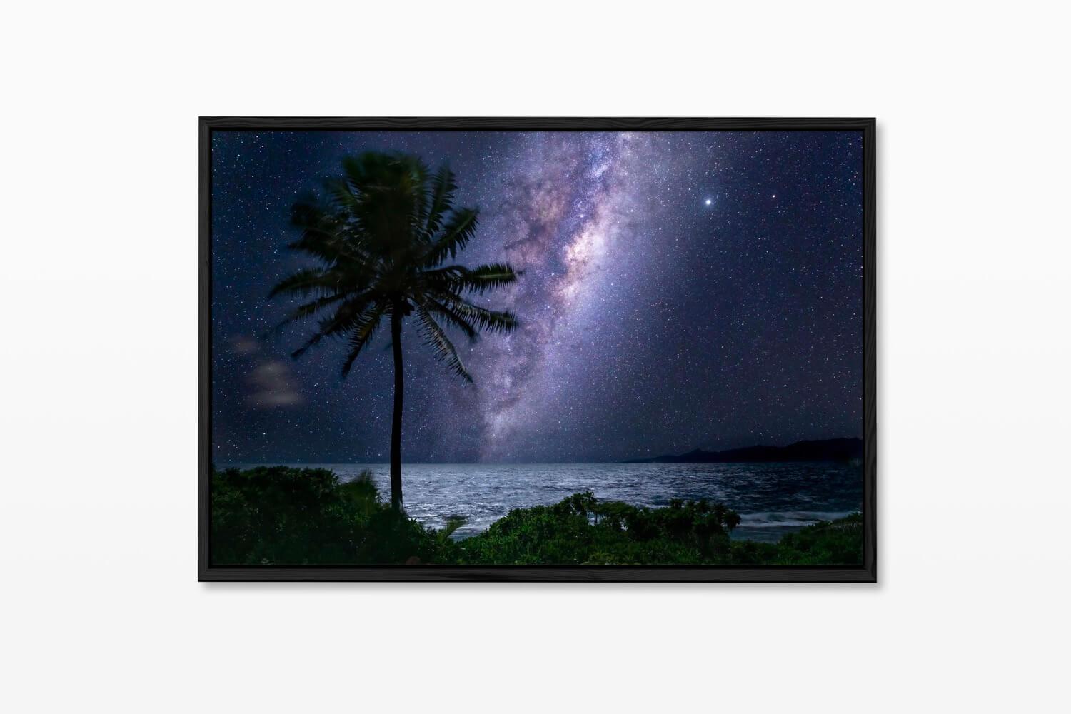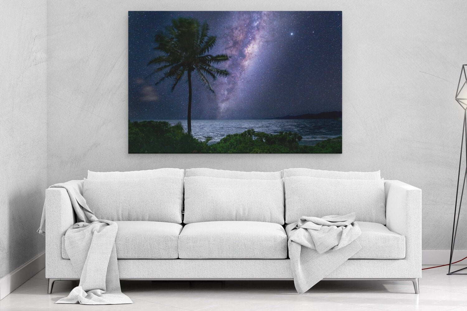 Shot on the island of Bora Bora on the reef side of the St. Regis Bora Bora resort looking out over the South Pacific ocean. The nights in the French Polynesia on a cloudless night are full of stars. To the naked eye the milky way appears as a thin strip of clouds but with a 15 second long exposure the sky comes alive. Captured August 2020. Limited Edition