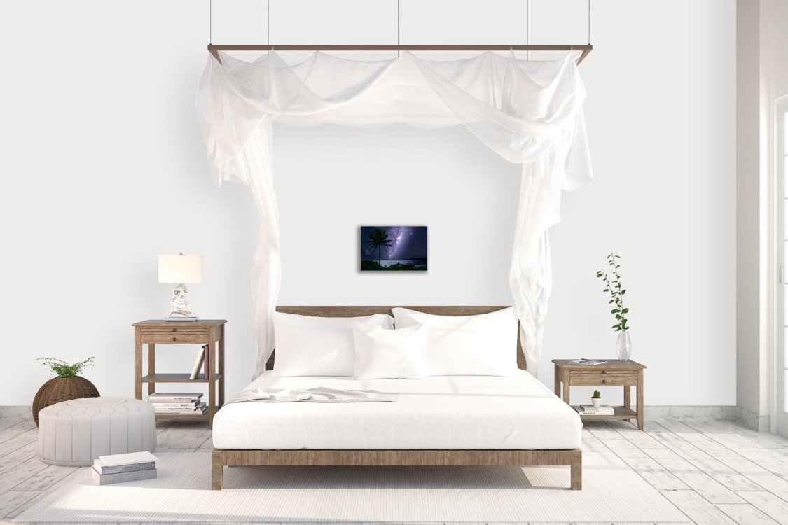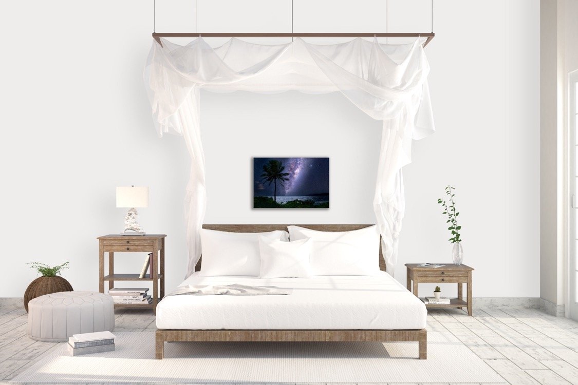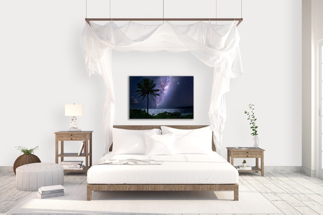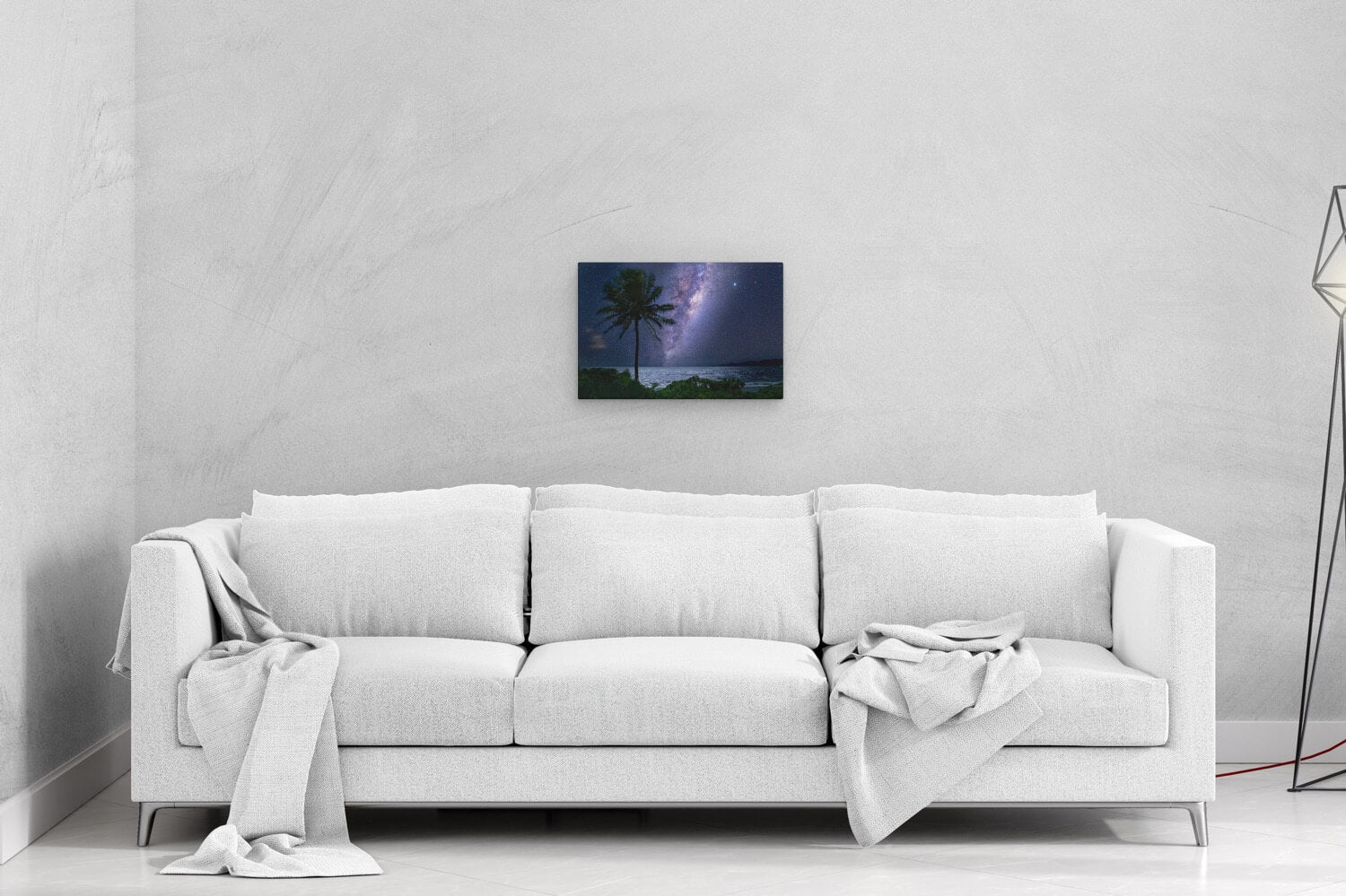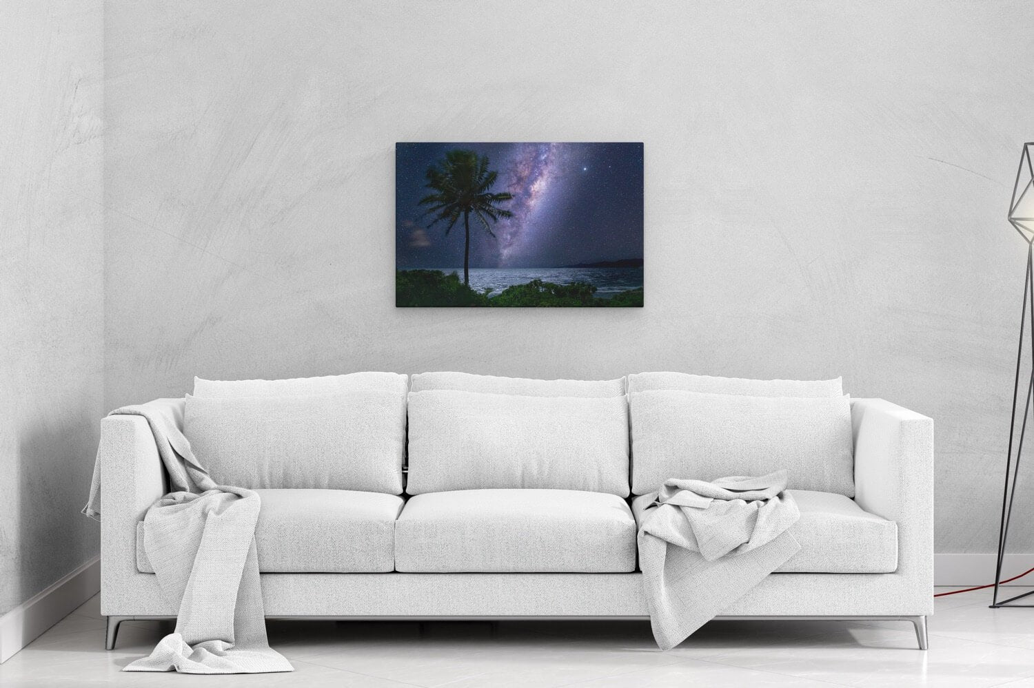 Shot on the island of Bora Bora on the reef side of the St. Regis Bora Bora resort looking out over the South Pacific ocean. The nights in the French Polynesia on a cloudless night are full of stars. To the naked eye the milky way appears as a thin strip of clouds but with a 15 second long exposure the sky comes alive. Captured August 2020. Limited Edition