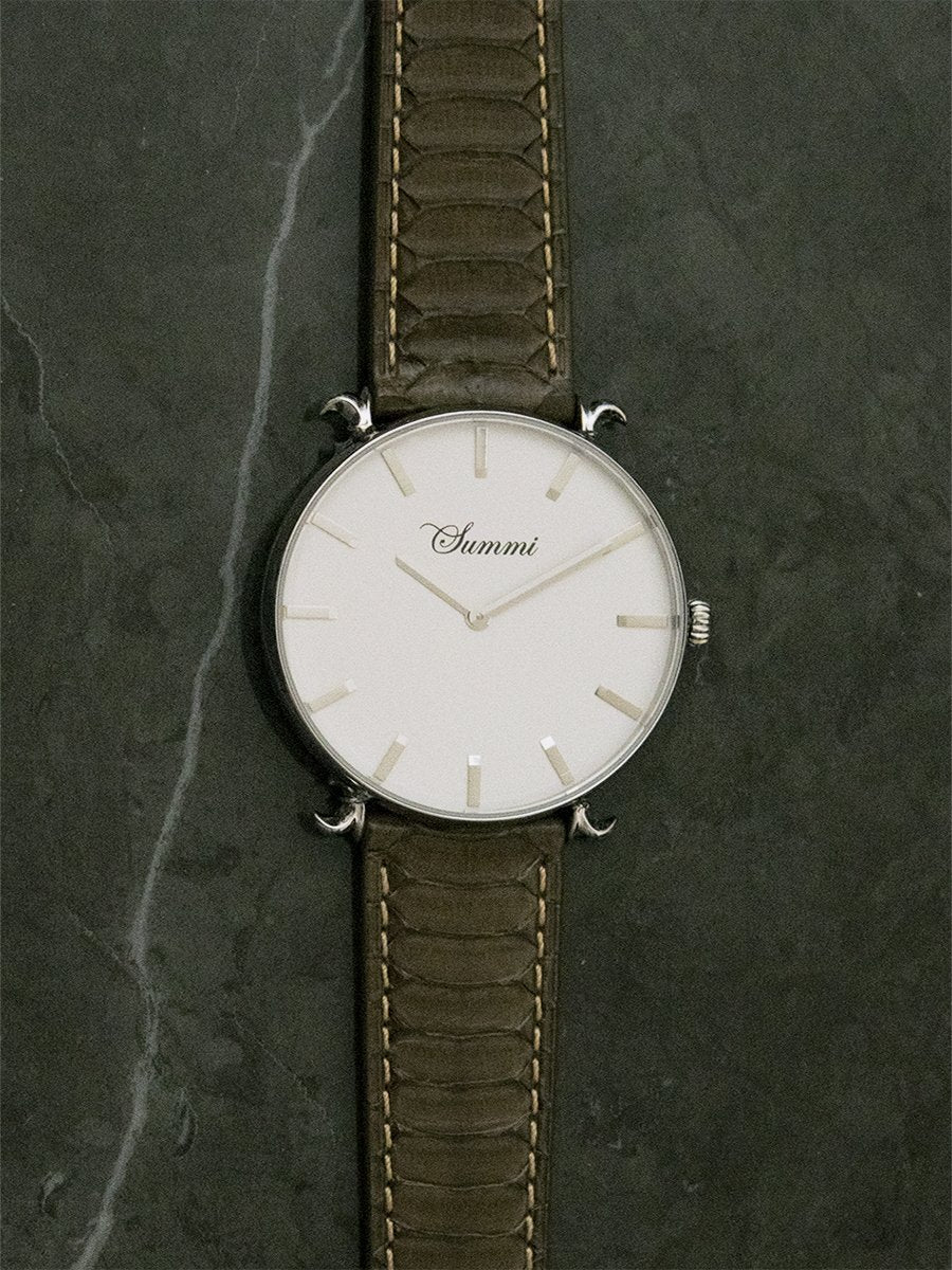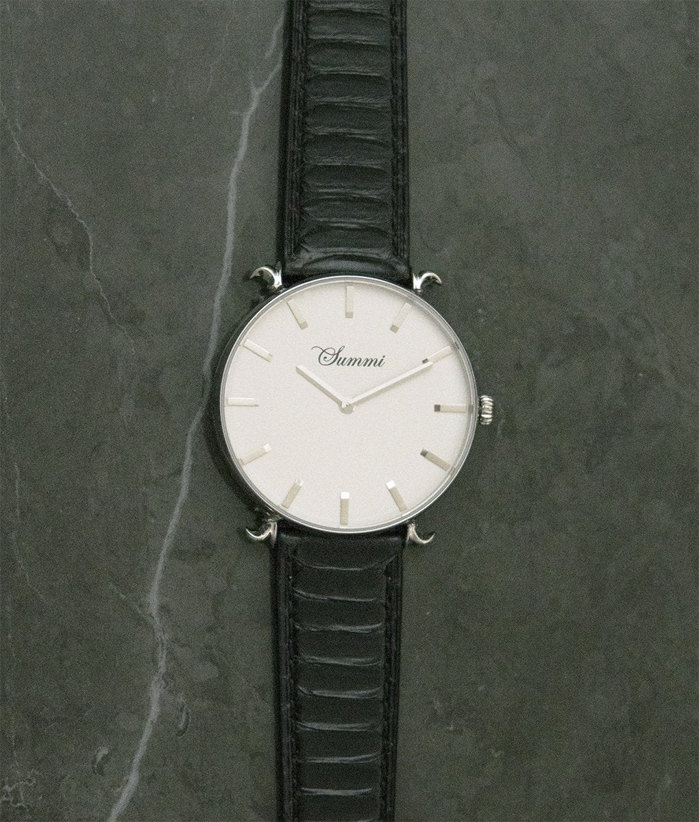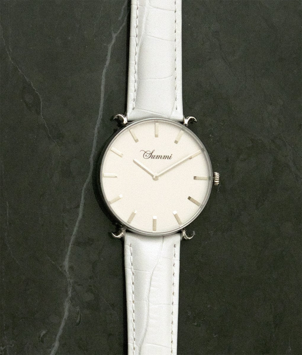 This timepiece is a French inspired design, depicting the Fleur-de-Lis, split into two that holds the strap on four sides. A blend of classic and modern with metal bar dials. Truly a mysterious timepiece that sparkles during the night. The most meticulous design out there currently. Our design is patent protected and is not to be imitated by any other.