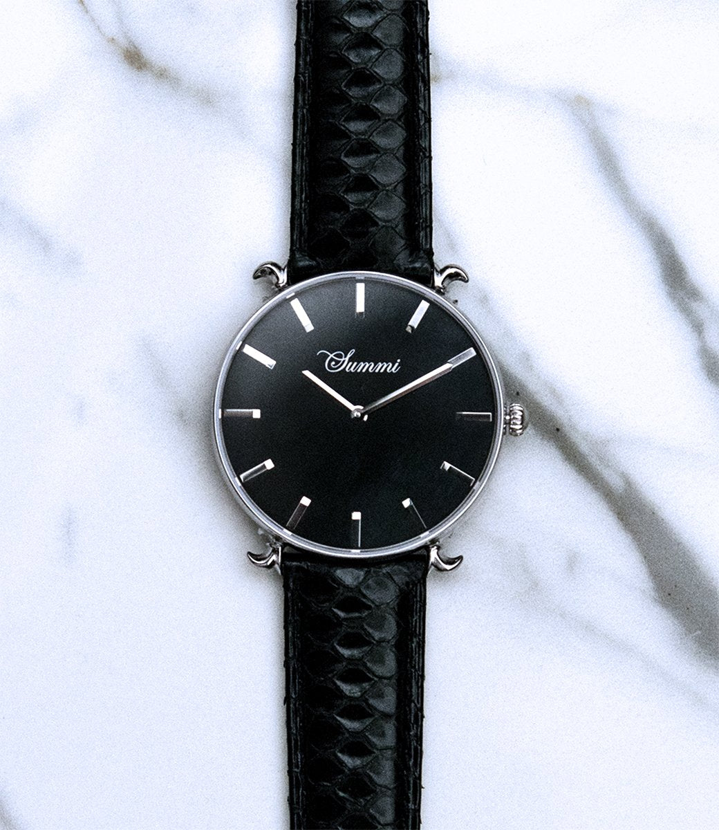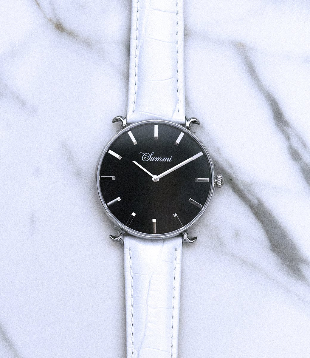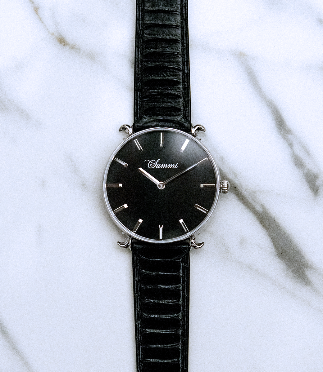 This timepiece is a French inspired design, depicting the Fleur-de-Lis, split into two that holds the strap on four sides. A blend of classic and modern with metal bar dials. Truly a mysterious timepiece that sparkles during the night. The most meticulous design out there currently. Our design is patent protected and is not to be imitated by any other.